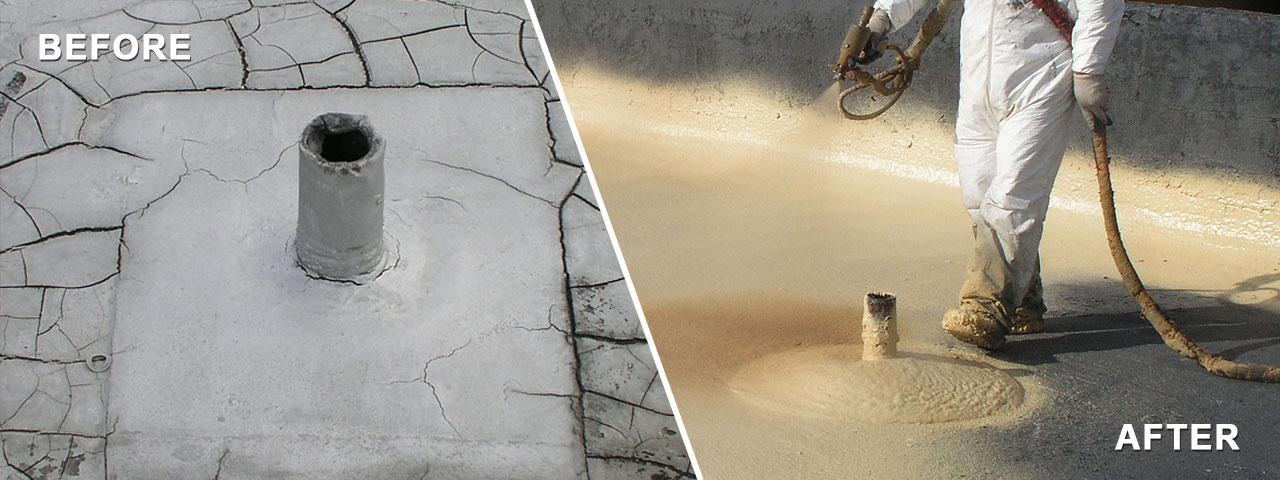 Spray foam is applied as a liquid using plural-component spray equipment. Upon being applied to a substrate, SPF expands to roughly 30 times its original liquid volume and dries within seconds. The expansion results in a dense, monolithic (weathertight) roofing system that is fully adhered to the substrate.
